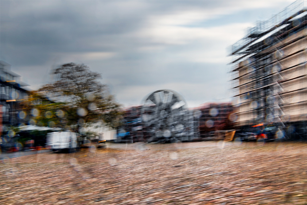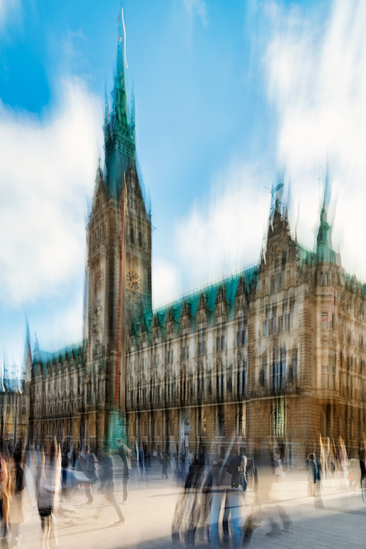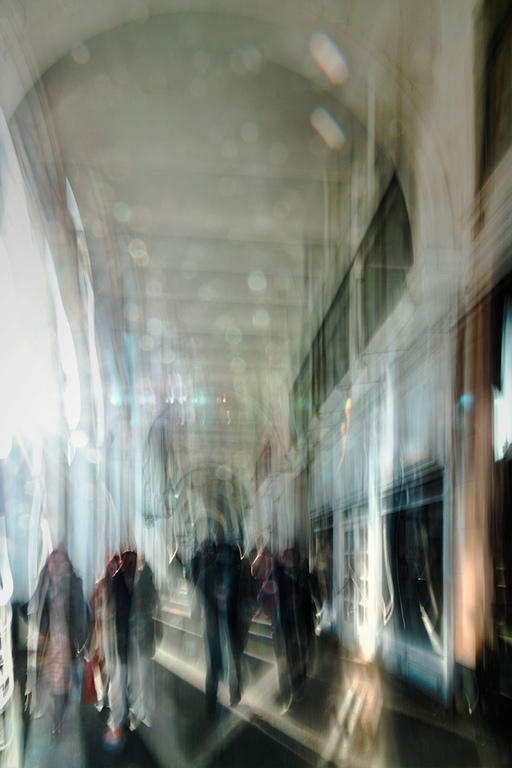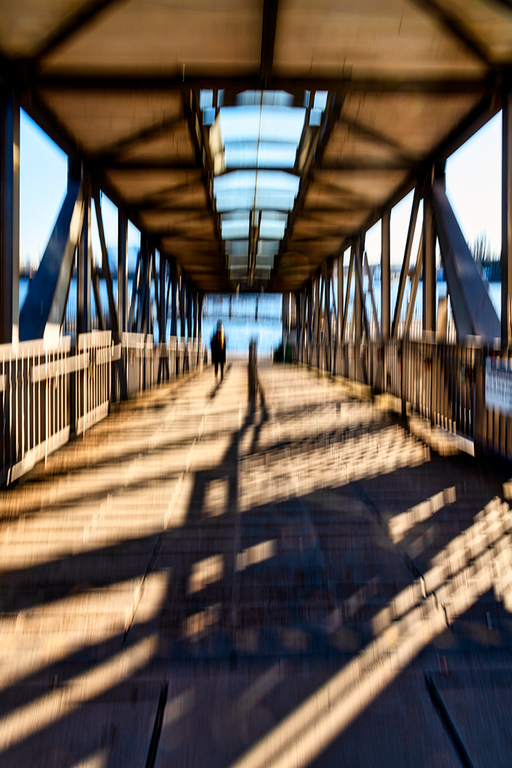 Der Fokus liegt auf den dynamischen, verwischten Linien und Formen, die durch die Bewegung entstehen und einen impressionistischen Eindruck vermitteln. Die Unschärfe ist dabei ein gewolltes Element des Ausdrucks.